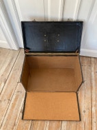 Kuffert, 100 år gl., b: 58 d: 32 h: 32, Antik opbevaringskuffert, fra ca. 1920’erne, den er håndlavet, materialet er træplader indvendigt og udenpå er den beklædt med et sort (ukendt) materiale. Den forreste side kan lukkes op (se foto) og der er plads til at sætte en hængelås på. Fin som dekorationsopbevaring og den er samtidig robust. Mål: ca. 58 x 32,5 x 32,5