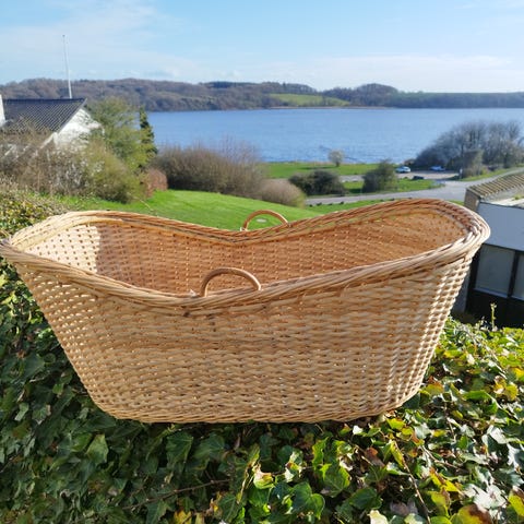 IKEA SNIDAD kurv i rotting i naturfarve. Kurven har rund form med flettet mønster og integrerede håndtag i siderne. Mål ca. 54x39 cm. Egnet til opbevaring af fx tæpper, puder, legetøj.