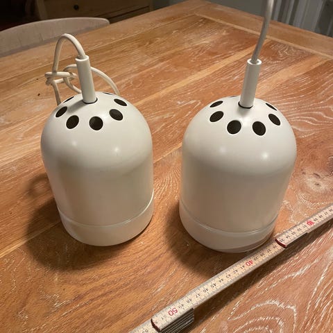 Kabellængde: 1.6 m - lamperne har været ophængt, så der er klippet af ledningslængde. Rosetter til loft mangler.