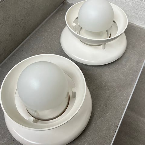 IKEA loftlampe i hvid. Rund model med integreret gitter foran pæren og ledning til tilslutning i loftudtag. Velegnet som grundbelysning i f.eks. gang, værelse eller køkken.