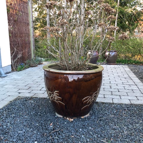 Frostsikker. Krukken har en lys kant foroven og er velegnet til udendørs eller indendørs beplantning. Egnet til eksempelvis mindre træer, buske eller større planter afhængigt af den konkrete størrelse.