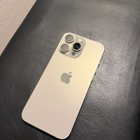 Selling an iPhone 15 Pro 128GB in natural titanium that I recently bought here on DBA. The phone is in a great condition and has just a few little marks and scratches around the frame (see photos). The display and back look pristine. The battery has recently been replaced and is therefore still at 100% capacity. The screen has also been replaced by green.dk, but not with an original Apple part. Most people wouldn't notice or care, but the slight difference in pixel density annoys me enough that I want to sell it again.