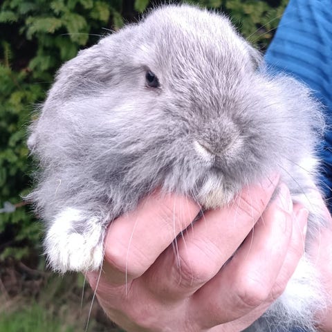 Jeg har et lille opdræt af Minilops , hvor mine kaniner vokser op i store bure i en stald og med meget kæl og nus.