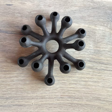 Frost Camouflage 3001 knagerække i farven Blomme. Knagerækken har et organisk, skulpturelt design med flere knager placeret på en pladeformet baggrund. Fremstillet i metal og beregnet til vægmontering. Velegnet til ophæng af jakker, tasker eller til brug i entré, værelse eller andre rum, hvor der er behov for ekstra ophængsplads.