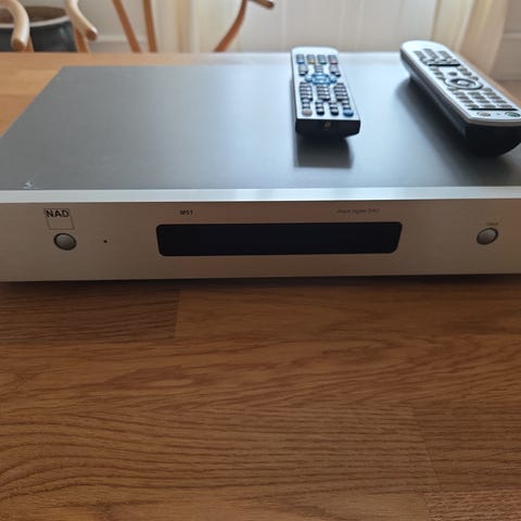 NAD C 510 digital DAC. En direkte digital konverter beregnet til tilslutning mellem digitale lydkilder og forstærker eller aktive højttalere. Enheden har flere digitale indgange på bagsiden, herunder koaksiale og optiske indgange samt balancerede og ubalancerede analoge udgange. Frontpanelet har display, betjeningsknapper og volumenregulering. Leveres med strømkabel som vist på billederne.