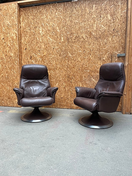 Model Contino, tegnet af Yngve Ekström, begge stole fremstår i velholdt patineret stand.
