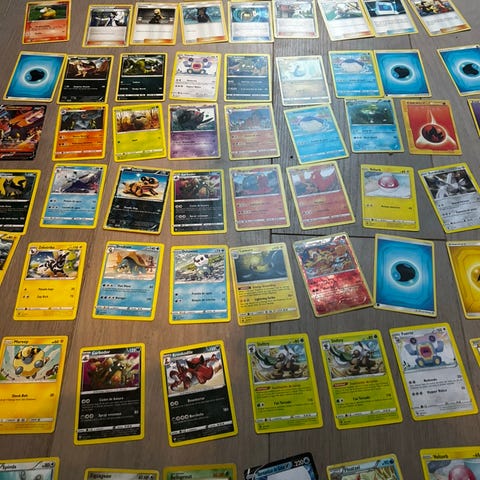 Pokémon kort samling. Blandede Pokémon samlekort, herunder forskellige motiver og typer. Kortene kan bruges til samling eller spil i Pokémon Trading Card Game. Antal, sæt og udgaver fremgår ikke præcist af billederne og bør afklares efter behov. Alle kortene er ægte sælger ikke fake kort og alle kortene har været tjekket af pokemons.dk. ingen scam bud.