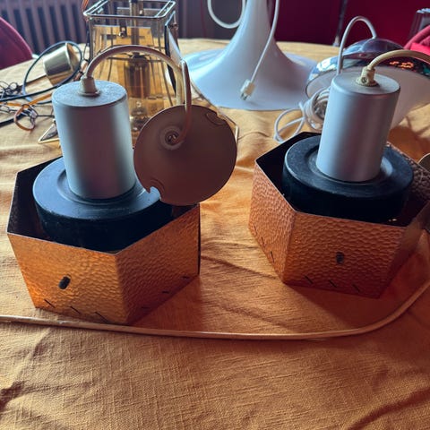 Sælger et par virkelig flotte Nordlux Model 2360 udendørslamper i ægte kobber. Lamperne har med tiden fået en smuk og naturlig patina, som giver dem masser af karakter og et eksklusivt look.