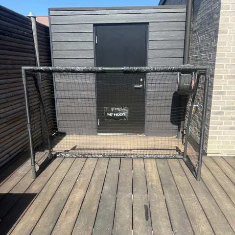 EXIT Coppa fodboldmål i stål 220x170cm - sort : Fodbold rebounder mål i sort metalramme med net. Velegnet til træning af skud, afleveringer og teknik i haven eller på andre udendørs arealer. Målene kan placeres op ad hæk eller hegn og bruges til individuel træning eller leg med bold.