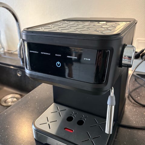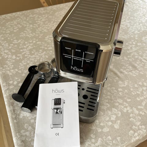 Helt ubrugt espresso maskine fra mærket Hâws til formalet kaffe.