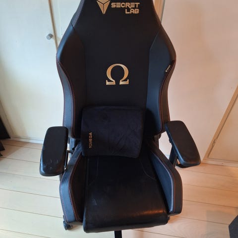 Brugt Gamerstol i sort af mærket Sandberg. Den har tippe- & drejefunktion, så man kan sidde behageligt. Den vil ikke tage skade af at blive mødt af en våd klud 🤣😂