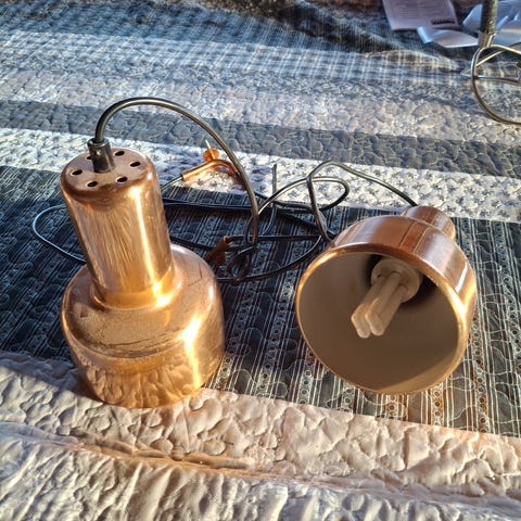 Sælger disse flotte kobberlamper med patina fra min barndomshjem. Der er 4 stk og de sælges til 200 kr pr stk