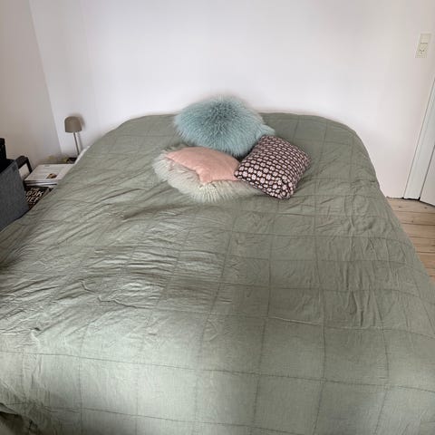 Søstrene Grene sengetæppe quiltet grøn bomuld