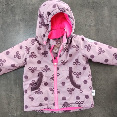 Hummel jakke til pige i str. 86. Jakken er rød og fremstillet i polyester. Den har hætte, gennemgående lynlås med trykknapper foran samt elastik ved ærmeafslutningerne. Ifølge mærkningen er jakken vandtæt og åndbar. Indvendigt er der navnemærke til påføring af kontaktoplysninger. Velegnet som overtøj til mindre børn i overgangsvejr eller regnvejr.