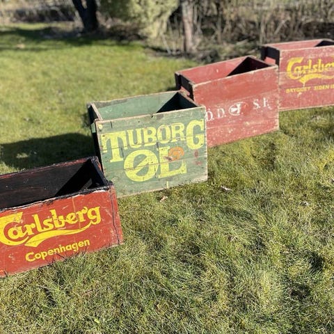 Forskellige retro træ ølkasser af Carlsberg og Tuborg Øl