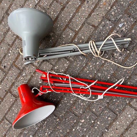 Vintage arkitektlamper, designet af Jac Jacobsen for Luxo. Har to identiske lamper fra 1970’erne i meget fin stand. Er med skruetvinge til bord.