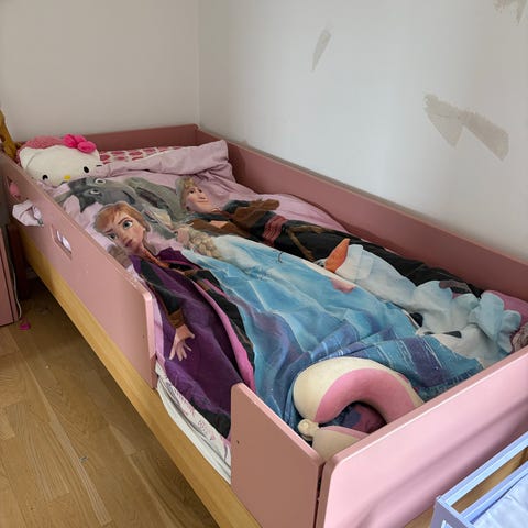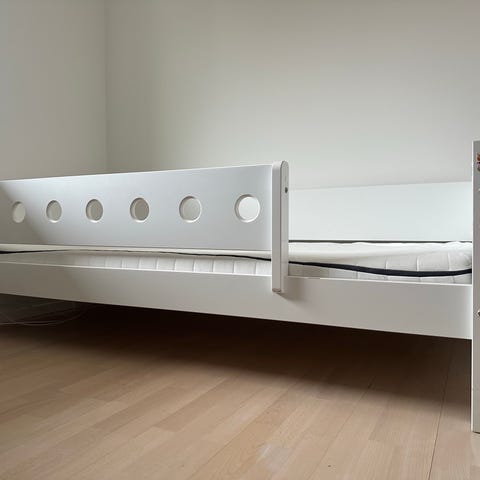 Vi har to af dem. Den ene har Ikea sengehest monteret som nemt kan fjernes.