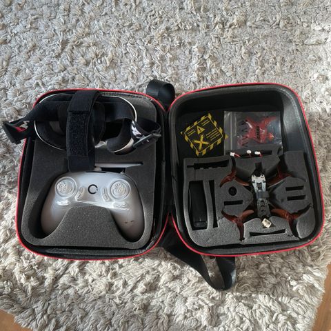 Der er limet 2.4G Antenna på for lang afstand flyvning. Æske medfølger samt 3 sæt batterier, memory card, stick beskyttere og ekstern ledning