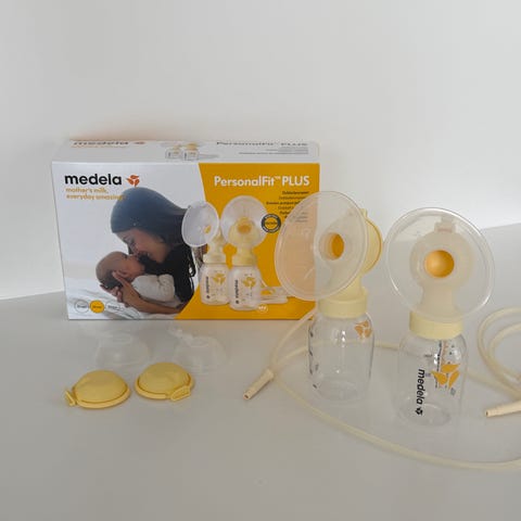 Medela PersonalFit Plus brystpumpe med tilhørende dele og slanger.