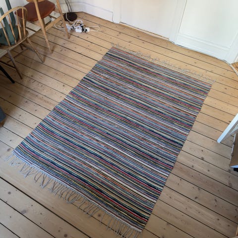 Så bliver det næppe mere svensk. De gamle, svenske kluddetæpper er geniale til en afslappet stemning i sommerhuset eller hjemmet. De lange tæpper, er gode til den smalle gang i Københavner lejligheder. Mål: 218 X 90 cm. Kludetæpperne kan vaskes i maskinen på 40 grader. Tæppet fremstår i god stand uden nævneværdige brugsspor og kan leveres i Københavnsområdet for en lille mere betaling.