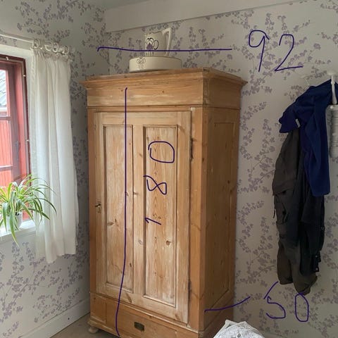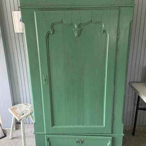 Sælger dette karlekammerskab eller lignende, malet i fin blå farve.