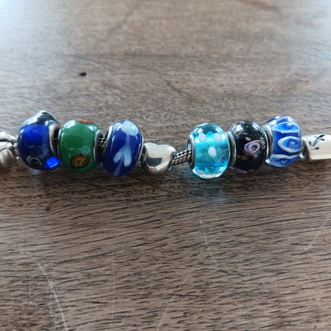 Pandora armbånd i sølv med 12 stk Pandora charms i sølv,Armbåndet er udført i sølv med flere charms i