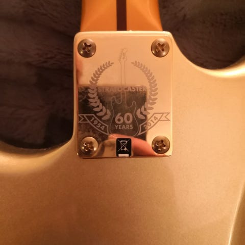 Made in US Fender '65 pickup sæt + slagplade monteret af tidliger ejer. En ejer har også malet guitaren med nitrocellulose lak.