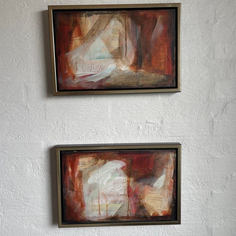 Abstrakt værk af Poul Erik H Andersen. Mixed media. Olie på karton og plade. Flot struktur i værket.