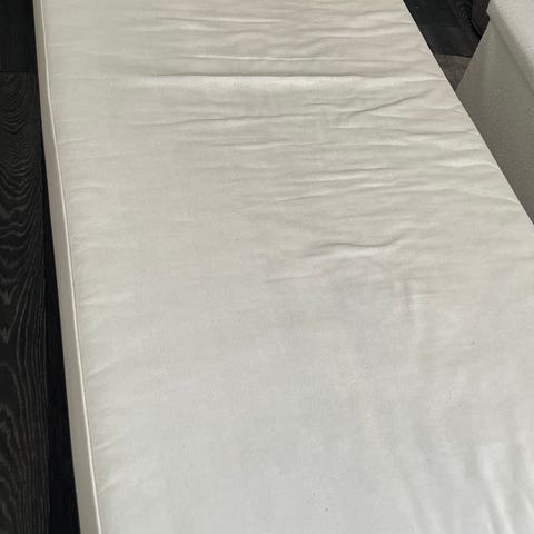Bænken er godt har et polstret ydre og et indvendigt opbevaringsrum med hængslet låg. Indersiden er i hvidt materiale med ventilationshul i bunden.
