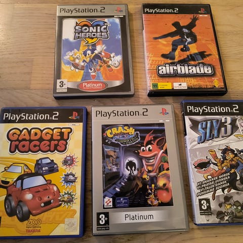 PlayStation 2 spil samling. Pakken indeholder flere forskellige titler i originale æsker, velegnet til brug med PlayStation 2 konsol. Spilgenrerne spænder blandt andet over action, eventyr, børnespil og racerløb. Velegnet til både enkeltstående brug og som udvidelse af en eksisterende PlayStation 2 spilsamling.