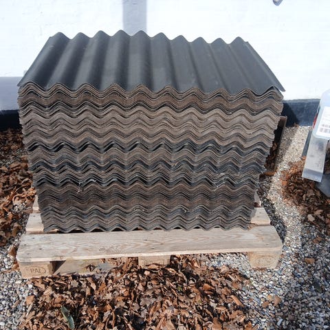 13 stk bølgeplader sælges. Overskud fra byggeri færdiggjort for 1 år siden. Helt nye, aldrig monteret. Har ligget på en palle indendørs siden.