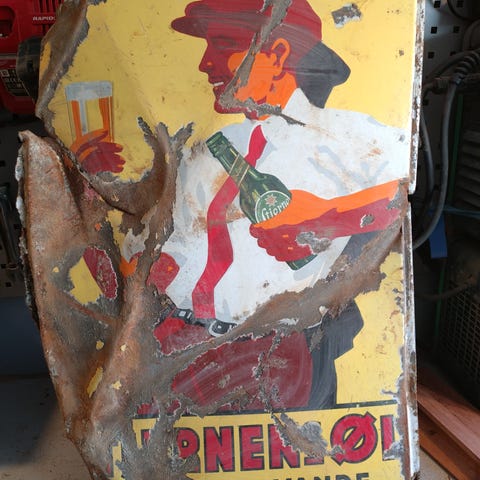 Thor Øl emaljeskilt i gul farve med motiv af tjener, der bærer bakke med ølflasker. Skiltet er udført i emalje og har sort tekst med teksten "Thor Øl" øverst. Hjørnerne er afrundede med ophængshuller i kanten. Egnet som vægdekoration, eksempelvis i bar, køkken eller opholdsrum.