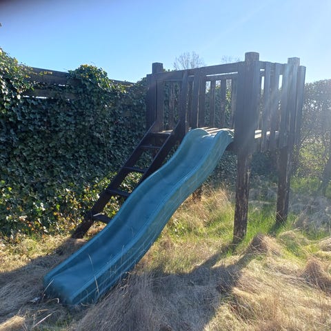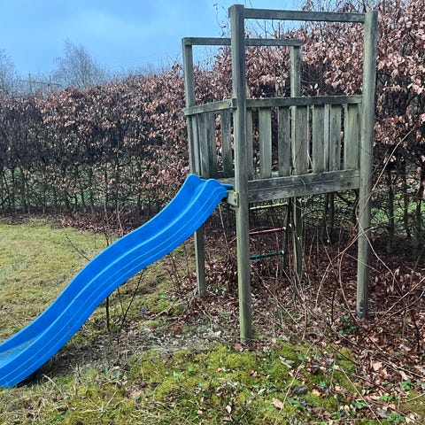 Gyngestativ med rutsjebane / tårn og legehus
