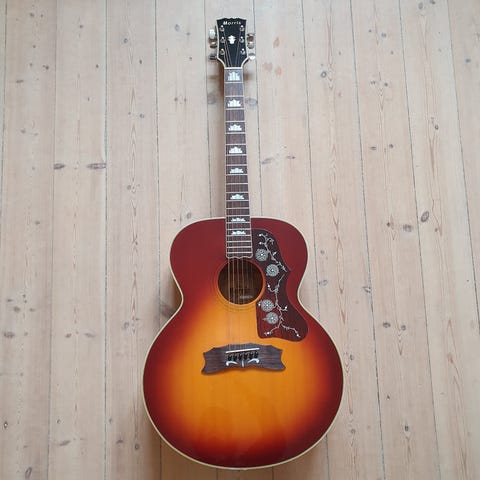 Epiphone EJ200VS western-guitar i jumbo-størrelse med sunburst-finish. Akustisk guitar med stor krop, dekorativ pickguard og indlagte positionmarkeringer på gribebrættet. Velegnet til akkompagnement og rytmespil, hvor den store krop giver fyldig lyd og god resonans. Leveres med blød gigbag efter billederne, hvis dette følger med i handlen.