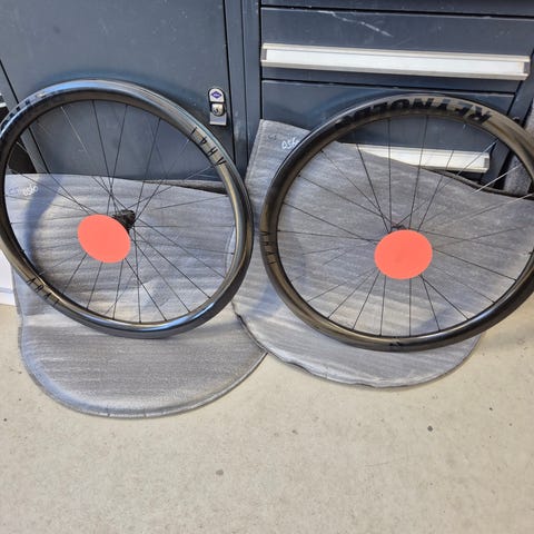 Kørt under 500 km. Været sat op med tubeless. Hjulsættet er renset efterfølgende.