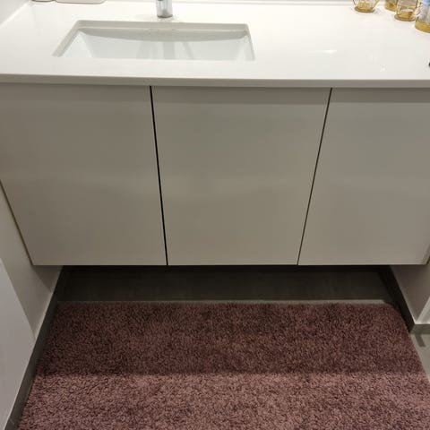 Badeværelsesskab med smuk marmorbordplade og spejlskab