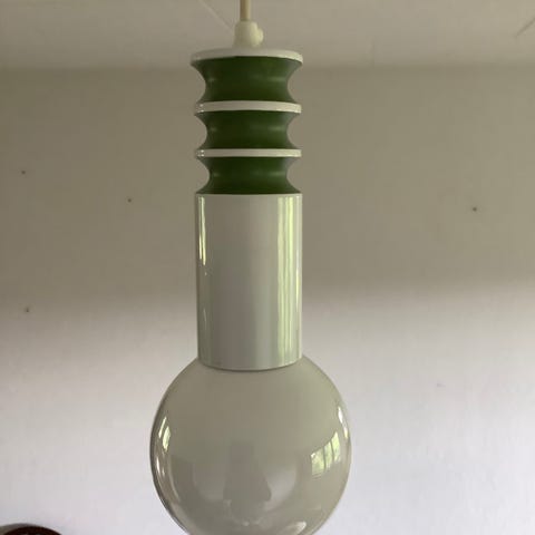Fin loftslampe i glas med mønster med rødt tern.