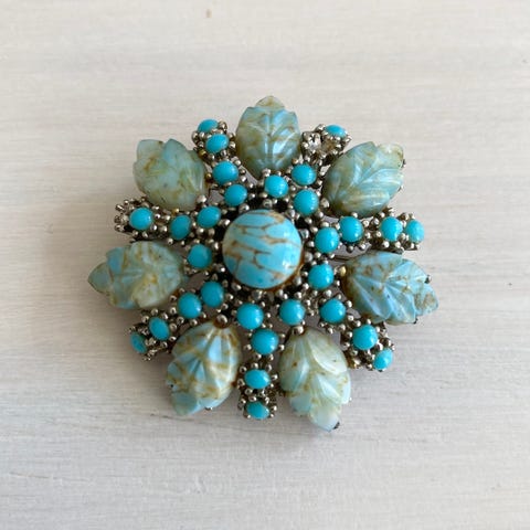 Speciel flot vintage broche med vedhæng sorte og klare similisten. Brochen er intakt.