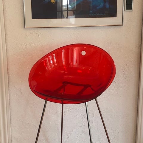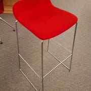 Moderne barstol fra Pedrali i slidstærk plast med en unik hjerteformet sæde og en glat overflade, som tilføjer et farverigt element til indretningen.