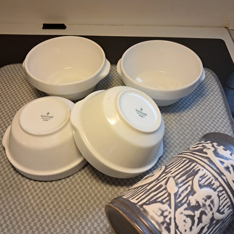 6 krus, 30 cl, ø 8 cm, højde 10,5 cm.