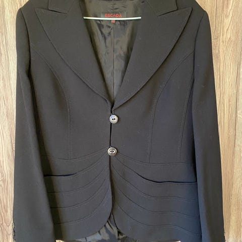 Blazer, str. 40, Escada, Navn, 100% uld, God men brugt, Vintage Escada blazer, str 40, med bælte, den har desværre et lille hul i det ene ærme, og 3 små bitte huller i det andet ærmer, venligst se de sidste 4 billeder for før og efter reperation af hullerne, deraf prisen