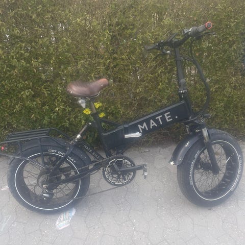 Her er en rigtig fed mate citybike som dog er brugt men i god stand for nyligt er der blevet skiftet bremser, handels, støtteben og hjul. Cyklen kan kører ca 45 Km på en opladning og tager ca 2 timer at lade fuldt op. Den er også super justerbar så alle størrelse af folk kan bruge den