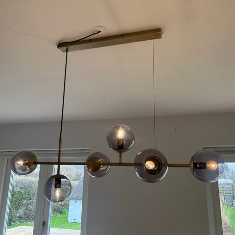 Glaskuplerne er ca. 21 cm høje, og diameteren er ca 25 cm. Hver lampe har en stofledning på 120 cm.