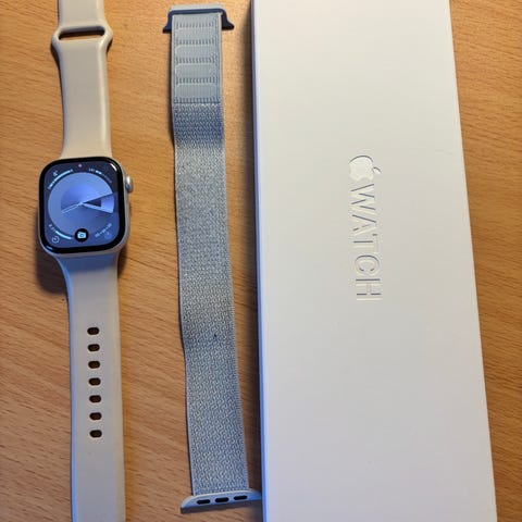 Sælger mit Apple Watch Series 9 i 41 mm i den flotte Starlight farve. Uret fremstår i rigtig pæn stand og fungerer 100% som det skal.