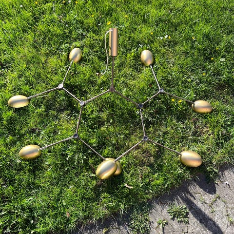 A pendant lamp, in oxidized aluminium, with an industrial look that casts contrasts of light and shadow. Used for only 2-3 months.