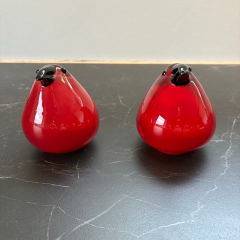 OYOY Inka vase i mundblæst glas. Sættet består af to vaser, én i hvid/offwhite med brun knop og én i brun med orange knop. Begge vaser har rund hank/knop på siden og en blød, organisk form. Velegnet til dekoration eller til mindre buketter og grene i hjemmet.