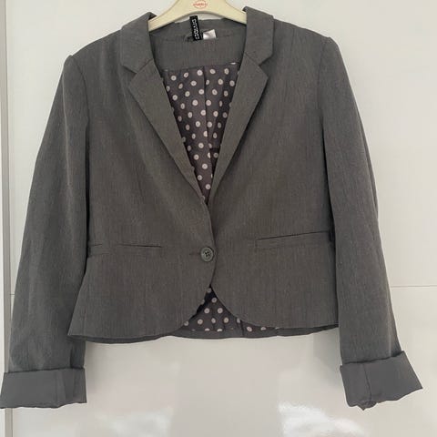 Smart kort jakke i flotte farver (sort, lilla, hvid, grå), lukkes med lynlås, med “høj” hals.
