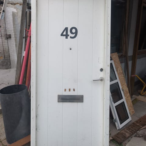 med karm og hængsler, som vist på billederne. Velegnet som yderdør til hus, sommerhus eller udhus, hvor der ønskes lysindfald gennem glaspartiet.