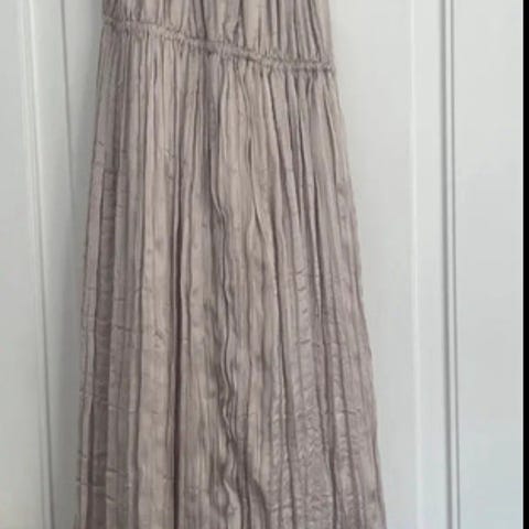Smart lang kjole med tynde stropper, elastiksyning på ryggen, V-hals foran, med vidde.