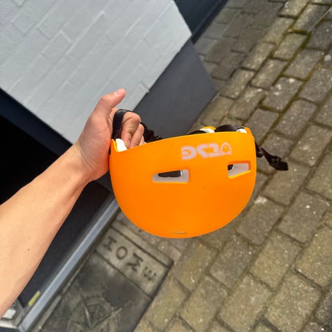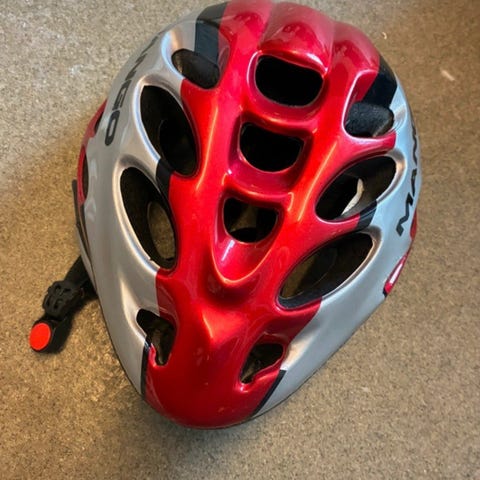 Tsg cykelhjelm i grøn farve med blomstermotiv og bladprint. Hjelmen har flere ventilationshuller for luftcirkulation og justerbar rem under hagen. Egnet som beskyttelseshjelm til cykling, løbehjul, skateboard eller lignende aktiviteter.